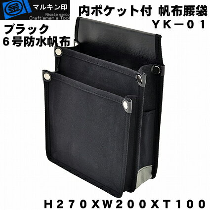 マルキン印 YK-01黒 帆布腰袋(道具袋)6号帆布仕様切込入りでY型ハーネスに装着可