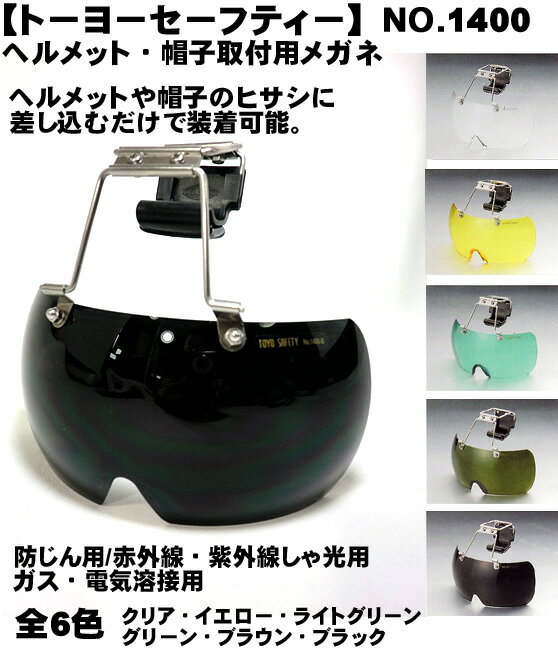 【トーヨーセーフティ】ヘルメット・帽子取付用メガネ1400 シリーズ有害な紫外線を99.999%カッ