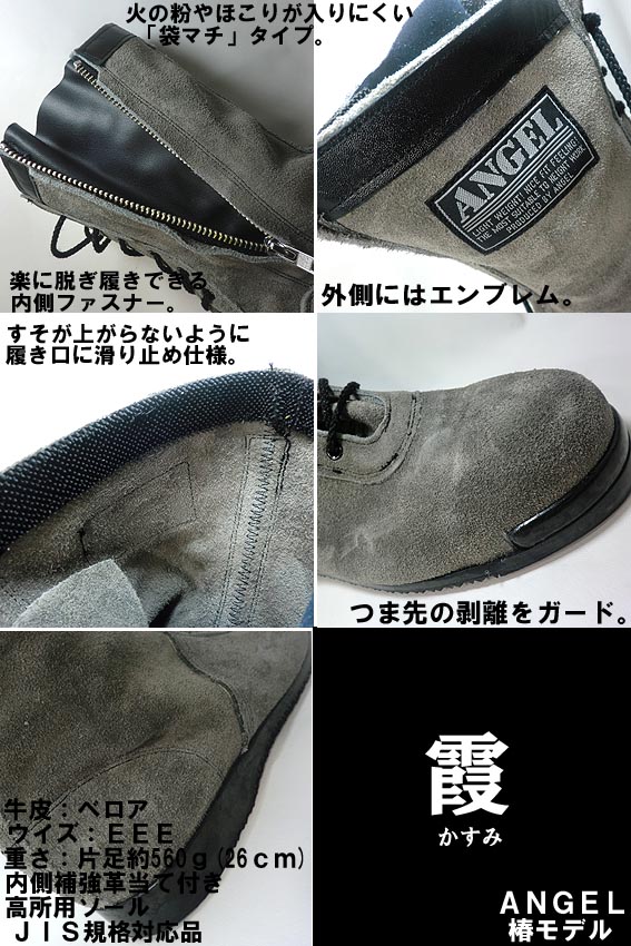 椿モデ CHS5800 霞 ベロア 高所用安全靴 グレーJIS規格 ANGEL(エンゼル安全靴