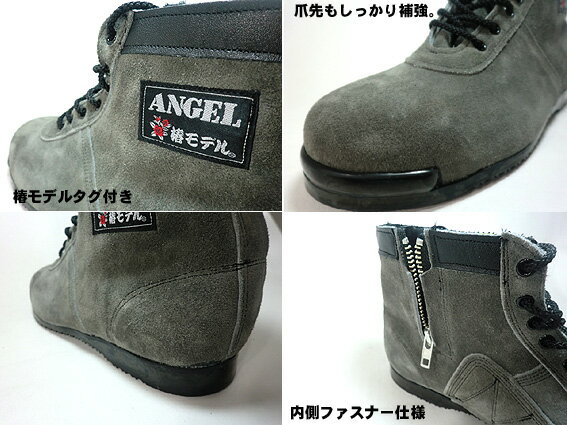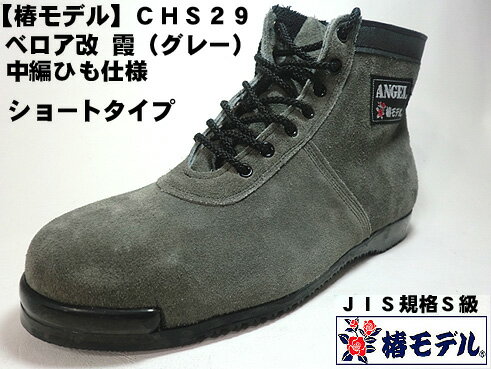 【 椿モデル 】CHS29 【霞 ベロア 改】編上 ミドルカット 高所用安全靴 グレー【JIS規格 ANGEL】(