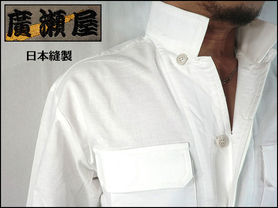 【廣瀬屋】【日本製】綿100% 立ち襟シャツ 白 オリジナル立ち襟シャツ祭り着・仕事着・肌着