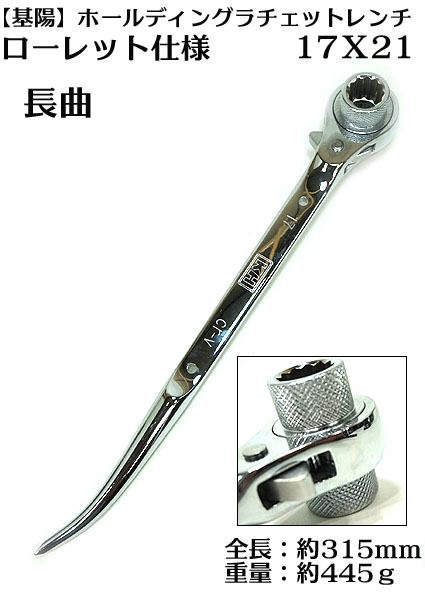 【基陽】【ローレット仕様】【長曲】ホールディング 総磨き ラチェットレンチ17X21【寅壱・関