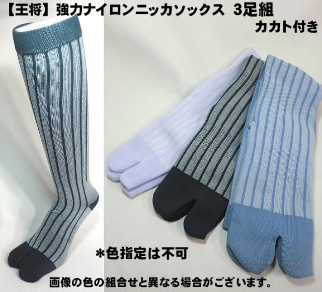 【ニッカソックス】 3足組 強力 ナイロン ニッカソックス カラー【王将】色選択不可