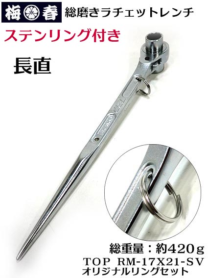 トップ 総磨き 長直 ラチェットレンチ ステン リング付き【梅春いちや オリジナル】RM17X21-S
