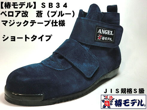 【 椿モデル 】SB34 【蒼 ベロア 改】マジック ミドルカット 高所用安全靴 ブルー【JIS規格 ANGEL