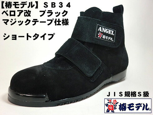 【 椿モデル 】SB34 【黒 ベロア 改】マジック ミドルカット 高所用安全靴 ブラック【JIS規格 ANG