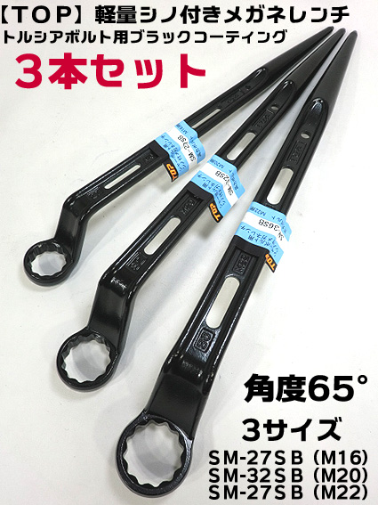 トップ 3本セット ブラック シャーボルト用シノ付き メガネレンチ SM-27SB SM-32SB SM-36