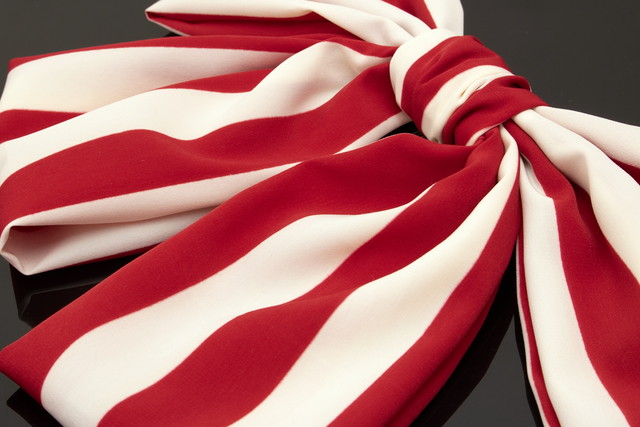 つるりとした肌さわりのしんなりした生地で、シンプルなストライプのデザインがモダン可愛い大きめのリボンです。