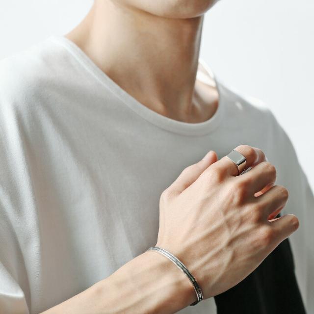 鏡面仕上げの平らな上部が特徴的な印台型リング。すっきりとしたシンプルなデザインなので、主張しすぎず他のアクセサリーとも合わせやすくなっています。