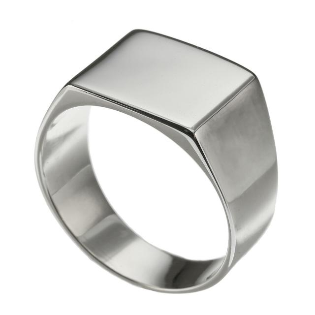 鏡面仕上げの平らな上部が特徴的な印台型リング。すっきりとしたシンプルなデザインなので、主張しすぎず他のアクセサリーとも合わせやすくなっています。