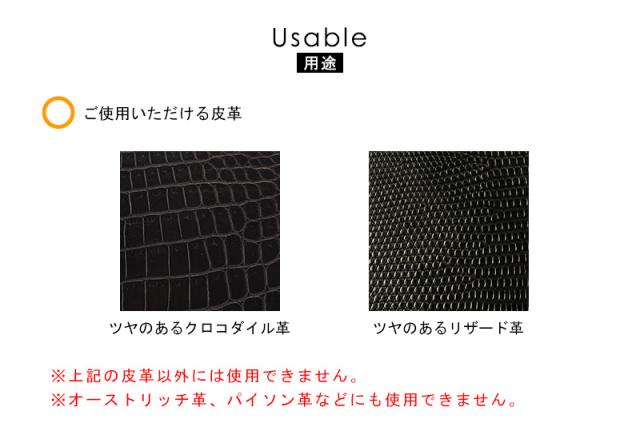 用途:ツヤのあるリザード革、クロコダイル革