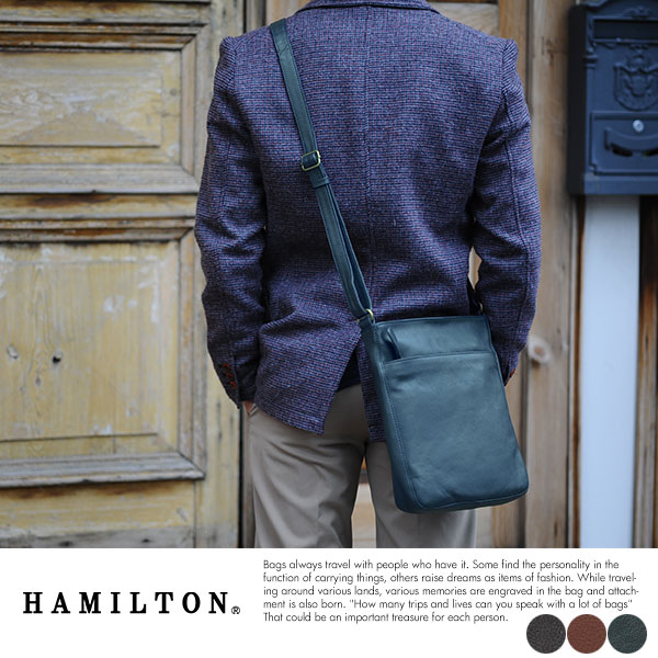 HAMILTON ミニ ショルダーバッグ 牛革 薄マチ ショルダー B5 小さい 肩掛け ショルダー バッグ 小型 コンパクト 【送料無料】