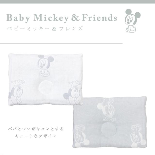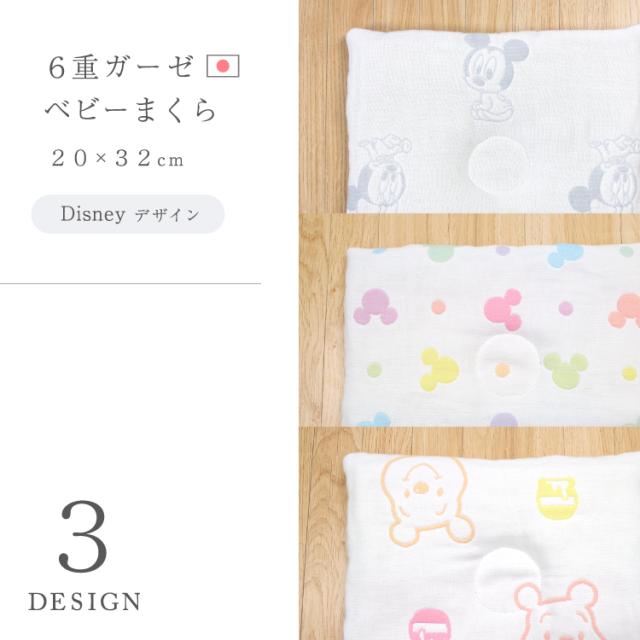 6重ガーゼ ベビー枕 日本製 リバーシブルタイプ 20×32cm ディズニー ベビーミッキー ベビーミニー くまのプーさん ミッキー 白 カラフル グレー シンプル ガーゼ生地 綿100% ベビーまくら un doudou オリジナル メール便発送(ポスト投函) NP