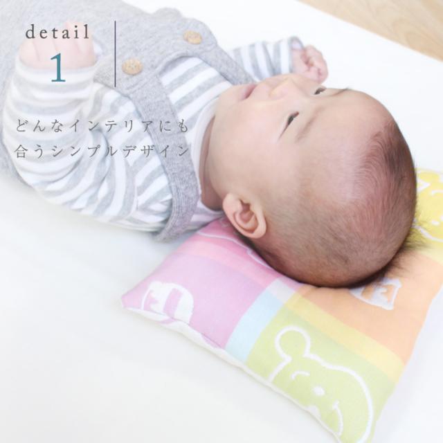 真ん中のくぼみがが、やわらかい赤ちゃんの頭をやさしく受け止めます。丸洗いできます。