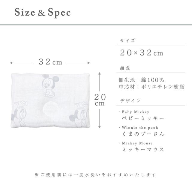 <Disney>全て国産の6重ガーゼベビー枕。