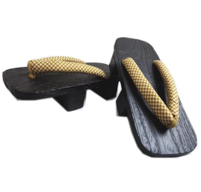 下駄 二枚歯 メンズ 男性 漆黒台 金茶きなり市松 LL 27cm 浴衣 甚平 着物 大きいサイズ 2L 男物