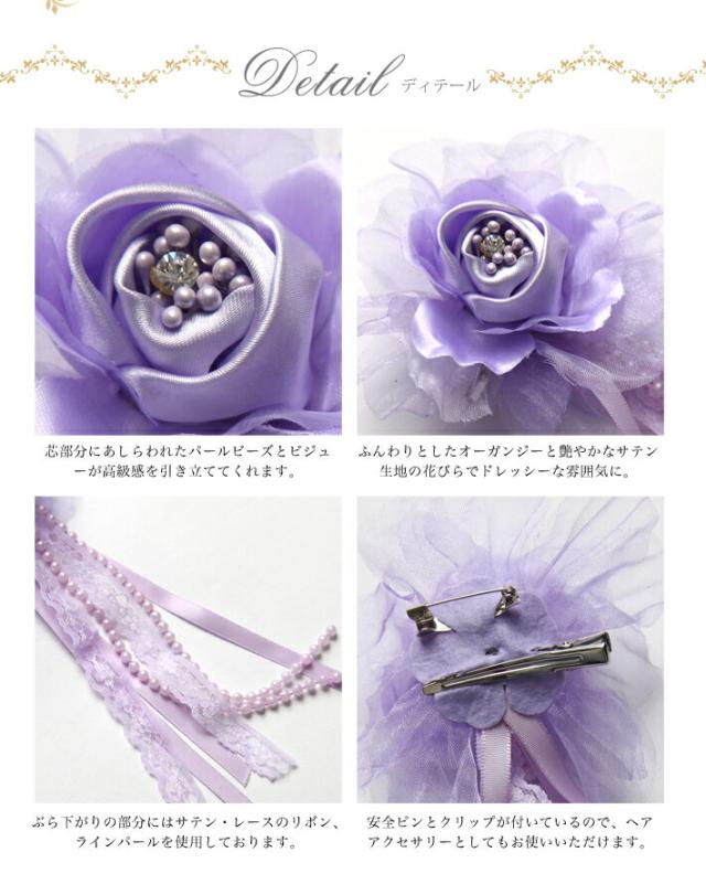 フォーマルコサージュ CO315-PU パーティー 花 ふわふわ 通販 パープル 紫 可愛い 髪飾り レディース 女性用 華やか