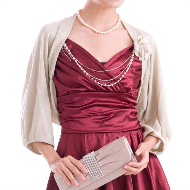 ボレロ【コサージュチェーン付きラメニット】
