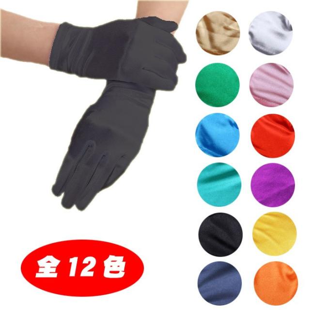 サテン ショートグローブ ウエディング グローブ 手袋 手首丈 ドレス ブライダル アクセサリー フォーマル ネイル コスプレ ダンス