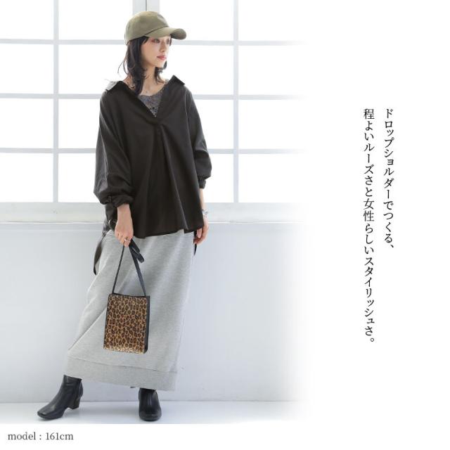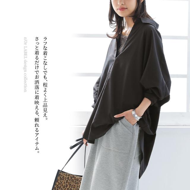 『スキッパーネックシルエットシャツ』※メール便可※【5】[シャツ レディース トップス ブラウス ドルマン スキッパーシャツ 抜き襟 シンプル きれいめ 通勤]