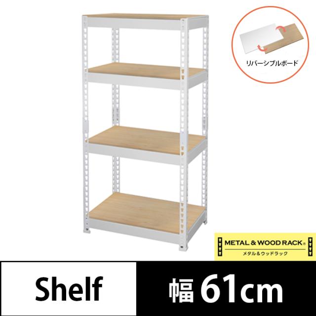 耐荷重50kg! シェルフ 4段 ホワイト 幅61cm ラック シェルフ 棚 スチール ウッド リバーシブル メタル&ウッド リモートワーク 在宅 リモート PCデスク テレワーク モダン シンプル おしゃれ 韓国インテリア(代引不可)【送料無料】