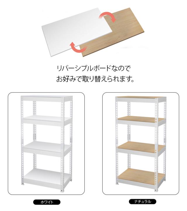 ●棚板は木目調のリバーシブル仕様で、ホワイト・ナチュラルの2色を選択可能