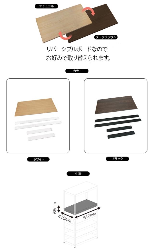 ●棚板は木目調のリバーシブル仕様で、ダークブラウン・ナチュラルの2色を選択可能