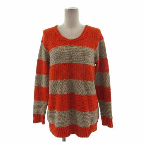 【中古】バナーバレット Banner Barrett ニット かぎ編み コットン混 ミックス糸 ボーダー オレンジ 茶 ベージュ 38