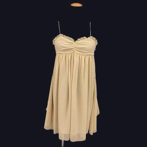 【中古】ディグレース DGRACE ワンピース ひざ丈 キャミソール 総裏地 フリンジ ベージュ レディース
