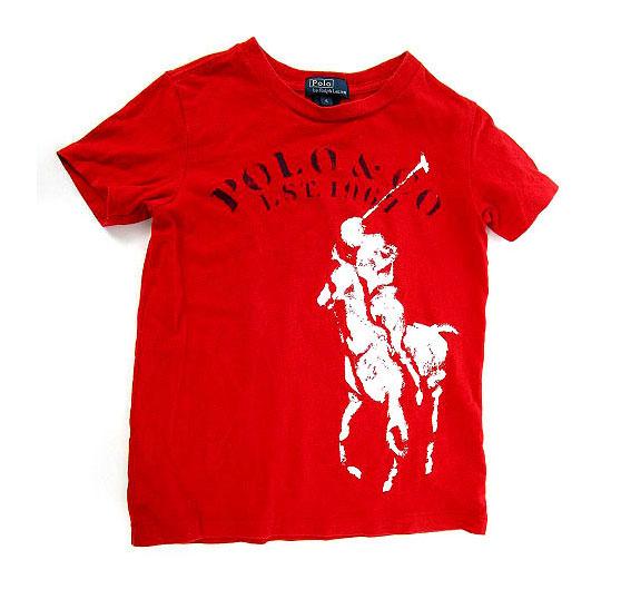 【中古】ポロ バイ ラルフローレン Polo by Ralph Lauren Tシャツ クルーネック プリント 半袖 レッド 赤 6 キッズ