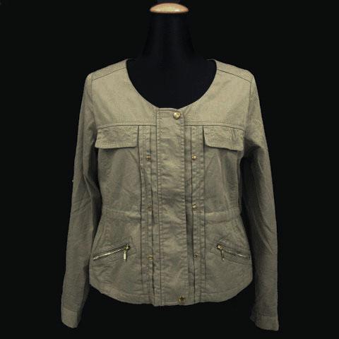 【中古】ブージュルード Bou Jeloud ジャケット ノーカラー 長袖 コットン混 カーキ 38 レディース