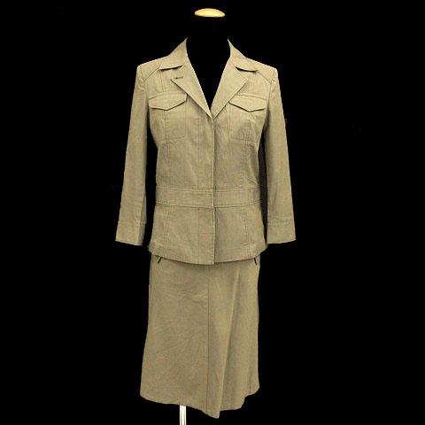 【中古】組曲 KUMIKYOKU スーツ 上下 セットアップ ジャケット 3 七分袖 スカート 1 ひざ丈 コットン混 シャドーストライプ ベ