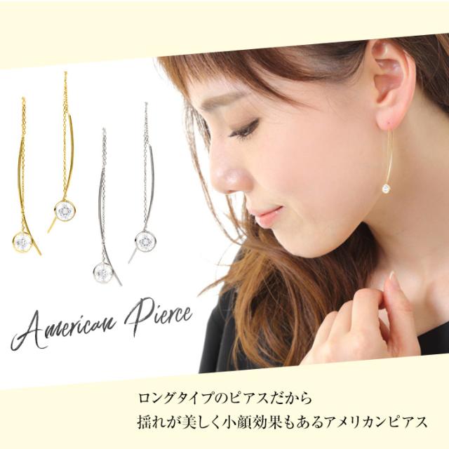 【末永く愛せるキュービックジルコニアピアス】美しく揺れるチェーンと一粒のロングピアスは、カジュアルな装いからパーティーシーンまで幅広く活躍してくれます。【H&C(ハート&キューピッド)キュービックジルコニアを使用】H&C(ハート&キューピッド)は完璧なカットの証です。ダイヤモンドに匹敵する輝きは他にはない特別な贈り物にも。【金属アレルギー対応】金属アレルギーを起こしやすいニッケル・コバルト・スズ等の素材を一切使用しておりません。アレルギーをお持ちの方でも安心してご使用頂けます。※個人差がございますので全ての方に適合する物ではございません。【無料ギフト包装】プロポーズ・誕生日プレゼント・結婚のお祝いや記念日に、またバレンタインのお返し・母の日・出産後のプレゼント・お嬢様への卒業式や入学式のお祝いなどのプレゼントとしても人気の商品です。送料無料でお届けいたします。