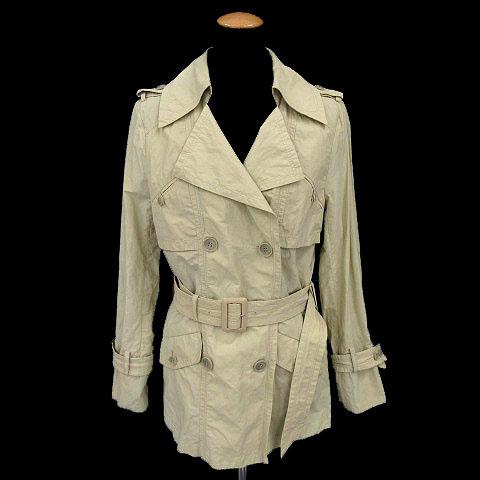 【中古】ア ガナードAGANARD トレンチコート コットン混 3B シワ加工 ベージュ 38 レディース