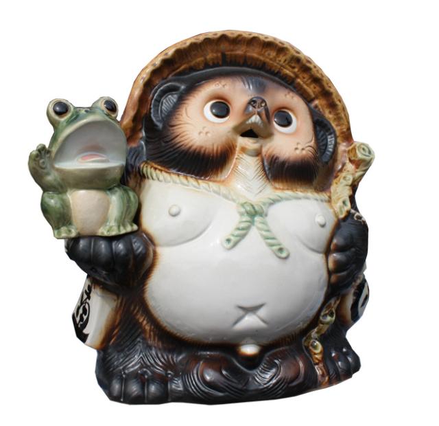 かえる持ち福々狸9号 信楽焼 たぬき 陶器 狸 置物 タヌキ 彩り屋