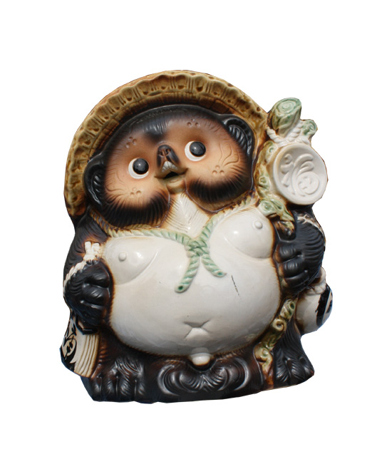たぬきは「他を抜く」という意味で繁栄の縁起物。 信楽狸には、傘、目、顔、腰、尾、通、徳利、金袋、 それぞれの部分に縁起のいい意味があり、 八相縁起と呼ばれています。 ![]() |