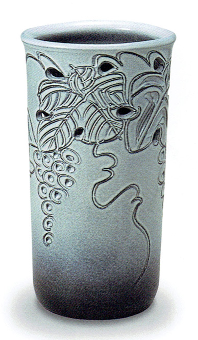 傘立て 信楽焼 ぶどう透し彫【天目かすみ釉】 傘立 陶器 彩り屋_