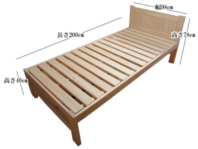ひのきベッド すのこベッド シングル ヘッド高さ78cm ヘッド羽目板(板貼り) オーダーメイド 国産 熊