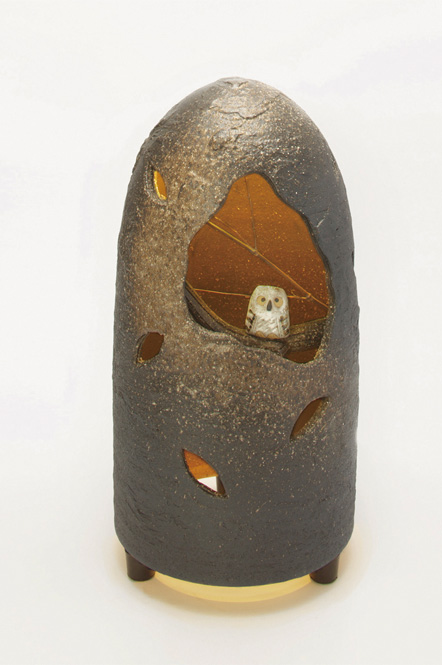 表情豊かな信楽焼の土味と、そこから溢れるやわらかな光が空間をやさしく彩ります。