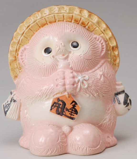 風水お願い狸 (ピンク) 開運お願いたぬき(ピンク) 信楽焼 たぬき 陶器 狸 置物 タヌキ 彩