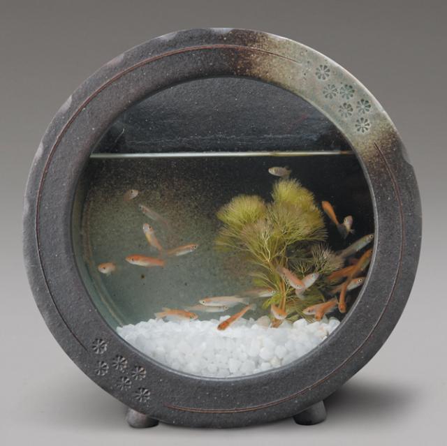 1250年の伝統の匠の技が作り出す信楽焼の陶水槽は陶器とガラスのおしゃれな組み合わせです。