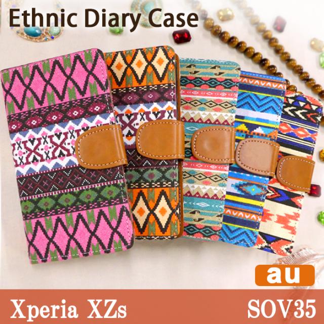 Xperia XZs SOV35 ケース カバー 手帳 手帳型 エスニック スマホケース スマホカバー エクスペリア XZs