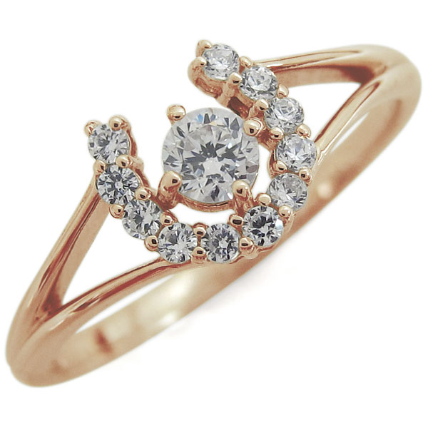 K10 ホースシュー リング ダイヤモンド 馬蹄 1月誕生石 指輪