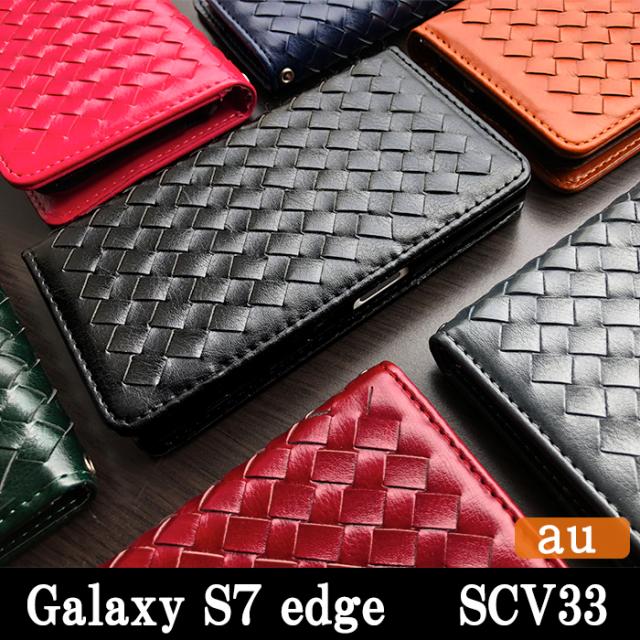 Galaxy S7 edge SCV33 ケース カバー 手帳 手帳型 大人の編み込みレザー スマホケース スマホカバー ギャラクシー