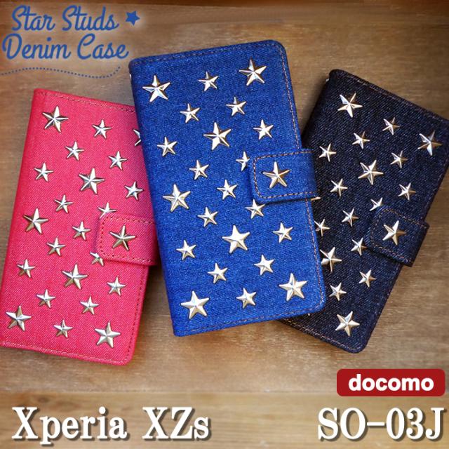 Xperia XZs SO-03J ケース カバー SO03J 手帳 手帳型 スタースタッズデニム スマホケース スマホカバー エクスペリア XZs