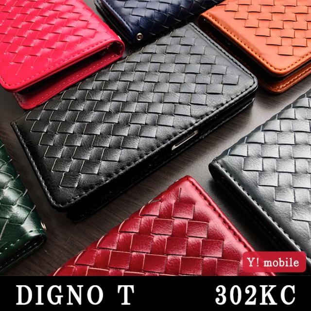 DIGNO T 302KC ケース カバー 手帳 手帳型 大人の編み込みレザー スマホケース スマホカバー ディグノ T