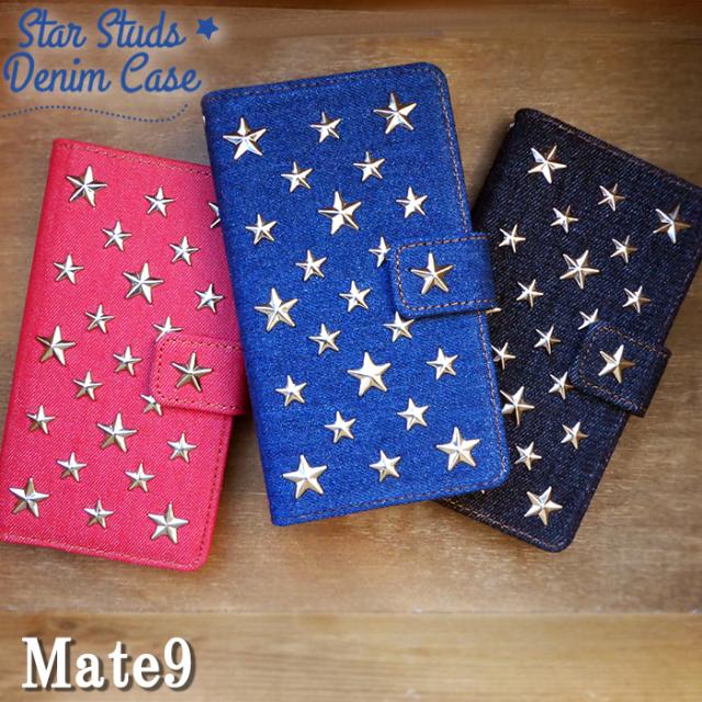Mate9 ケース カバー 手帳 手帳型 Mate9 スタースタッズデニム スマホケース スマホカバー HUAWEI メイト9 ファーウェイ