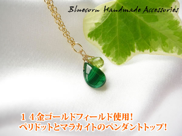 パワーストーン 14金ゴールドフィールド使用! ペリドット & マラカイト ペンダントトップ