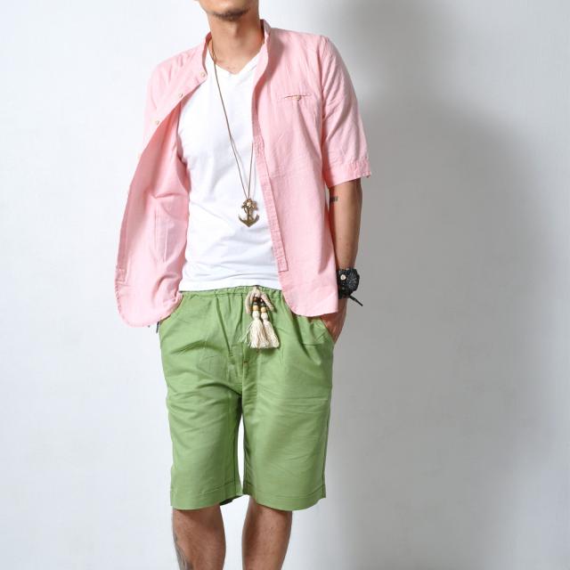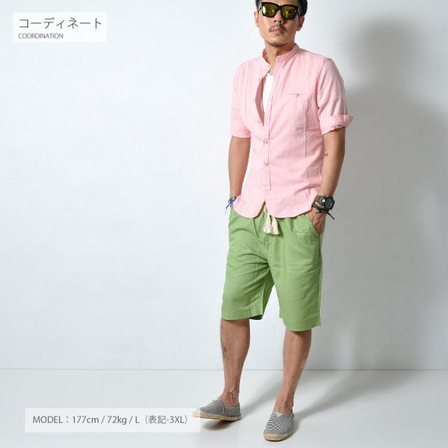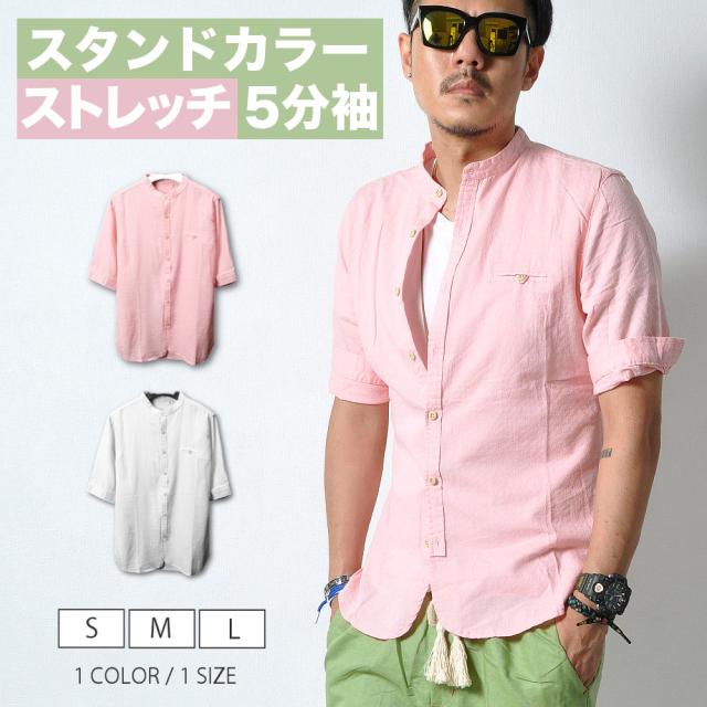 ストレッチ 5分袖 シャツ メンズ スタンドカラー バンドカラー 半袖 伸縮性#TS347 M便