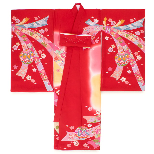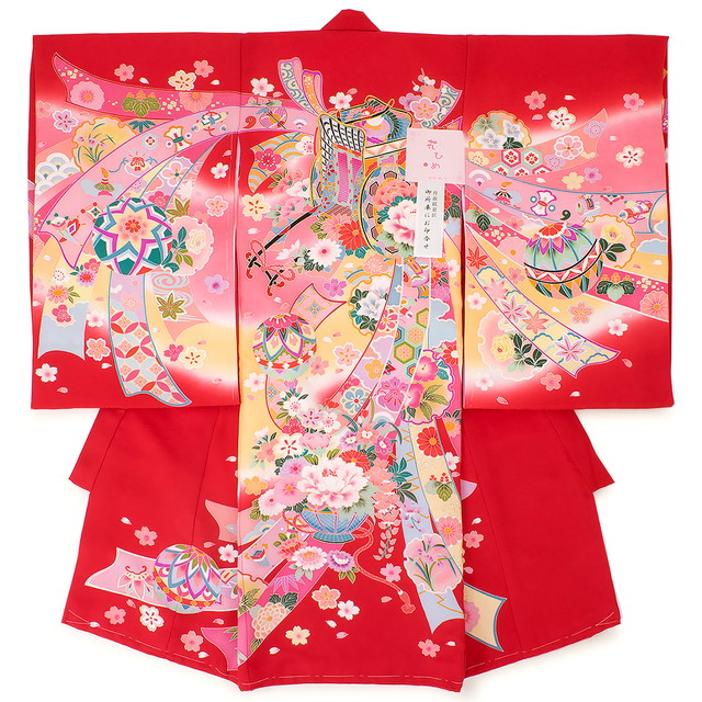 初着 赤 レッド ピンク 御所車 牡丹 手鞠 熨斗 金駒繍 丹後文意匠 正絹 産着 うぶぎ 祝着 お宮参り お祝い 女の子 女児 ベビー 日本製